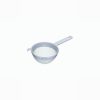 Lightweight round sieve with heat resistant fine mesh centre and heat resistant plastic frame, handle and twin resting arms