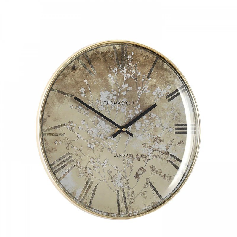 The Roma wall clock, inspired by the botanical world, injects it with a glamorous style. A delicate floral print behind a convex glass lens brings elegance to the face of this pretty timepiece.